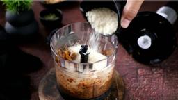 Add the dried mangoes, dates, and raisins to the food processor. Mix to a paste.